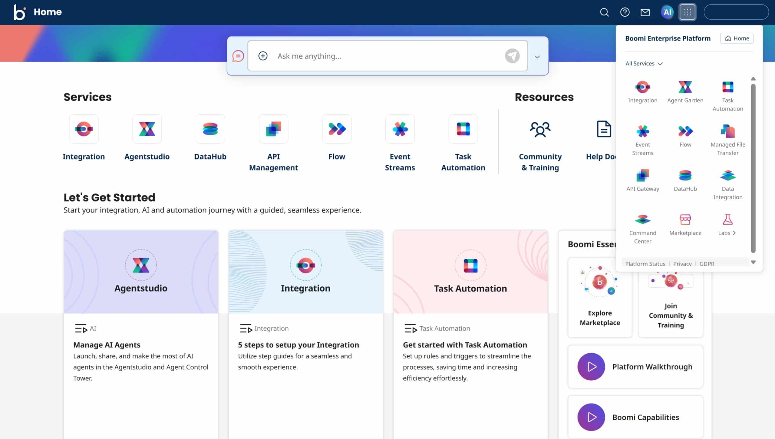 - AI-Powered Search: The new search provides AI-generated summaries for quick answers, pulling from all Boomi documentation and community resources.